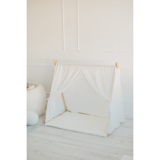 Create a magical hideaway with our wooden house tent. Natural muslin and minimalist design transform any nursery into a cozy dream space.