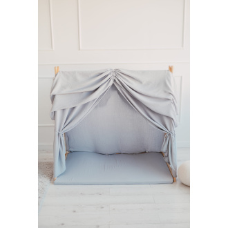 Create a magical hideaway with our wooden house tent. Natural muslin and minimalist design transform any nursery into a cozy dream space.