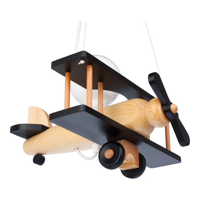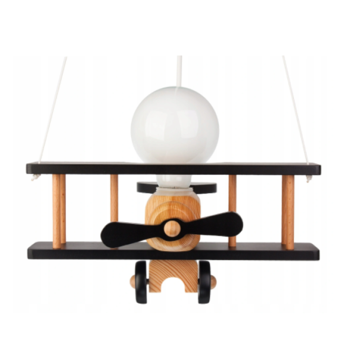 Lampa sufitowa samolot dziecięcy to propozycja bardzo ciekawego i oryginalnego oświetlenia dziecięcego. Z myślą o najmłodszych klientach stworzyliśmy wiszącą drewnianą lampę Samolot. Podczas projektowania lampy wiszącej Samolot zadbaliśmy o najmniejsze szczegóły, tak by rozwijała ucząc i ciesząc przy tym dzieci. Lampa sufitowa wisząca LED o kształcie Samolotu jest pokryta bezpiecznymi, naturalnymi wodnymi farbami. Wykonana została z drewna sosnowego, co czyni ją mocnym i trwałym oświetleniem na lata.